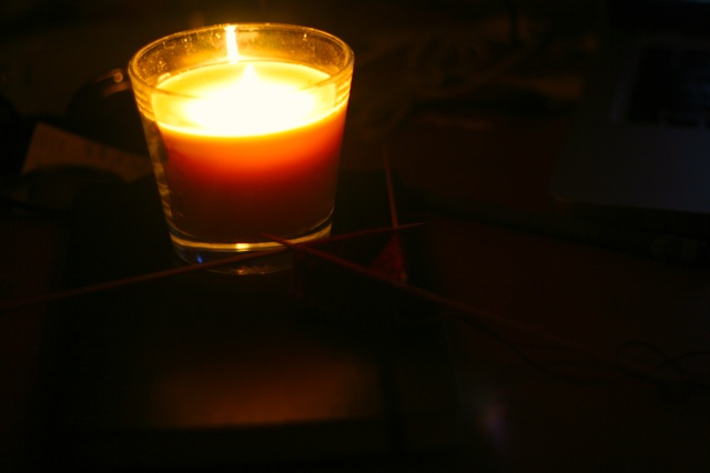 After all the weighing was over, I turned my lights out for Earth Hour and knit the ribbing for the second sock by candlelight. It turns out, oddly, that I actually don’t mind knitting 2×2 rib  as much when I can’t see it. It’s also a good rhythm, and allows you to feel your way along, knowing whether or not you’ve accidentally dropped a stitch in the dark. Also, it looks nice, no?