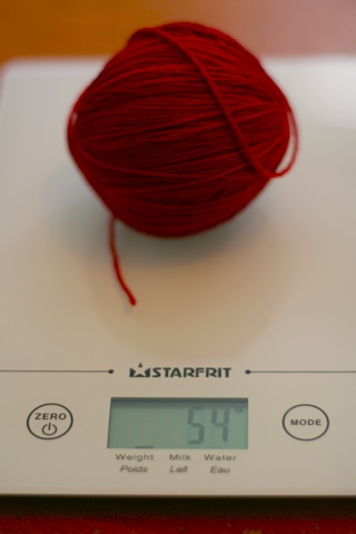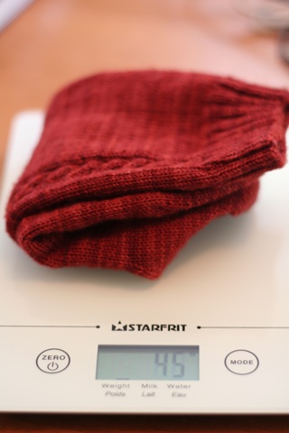My first reaction was to head to my LYS to pick up an insurance skein. I figured I wouldn’t need it until at least the foot, but still, planning ahead can’t hurt. They didn’t have any. After that, there was only one choice: buy a scale. And look! It turns out I might be okay.