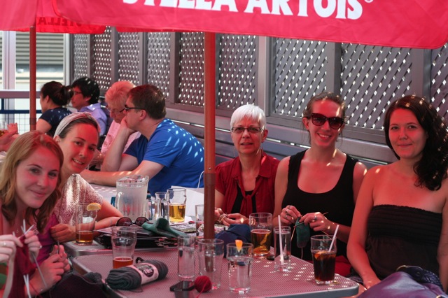 The first CanLit Knit book/knitting club was yesterday and it was great. We basked in the sun on a rooftop patio, drank beer, knit, and talked books (and knitting, and Toronto, and, well, about lots of things.) I‘ll be writing about our book pick Better Living Through Plastic Explosives by Zsuzsi Gartner later this week, so all I will say for now is that opinion was divided.