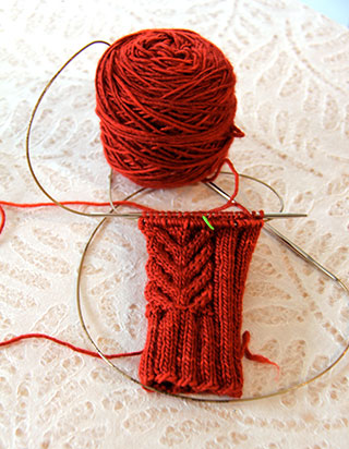 Secondly, I have been test-knitting for the shop. This is an almost-finished fingerless mitten, knit in Manos del Uruguay Silk Blend. I wish it was for me, because not only could I really use a pair of fingerless mitts, I love both this yarn and this pattern.