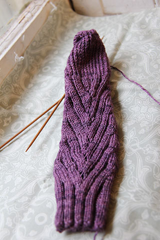 Third, the Daphne socks continue apace. My weekend is rapidly filling up, but if I can find a few spare hours in there, I might still be able to get them finished.