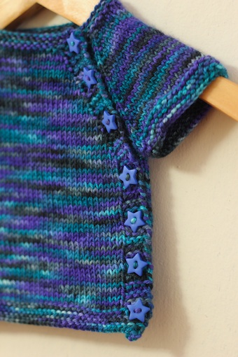 Modifications: To be honest, I basically knit this pattern as written. I did one extra garter ridge on the bottom, and I shortened the sleeves (details Ravelled here), but otherwise, this is a tidy little pattern and I didn’t change a thing. The reason I shortened the sleeves is because this is a March baby, and while March can be cold, it’s also a tricky month, and I thought shorter sleeves would be more versatile for layering (also, if it’s a girl, little pink or yellow or whatever coloured shirts and poke out) and will maybe keep this fitting for a little longer. I also suspect it’ll be easier to thread tiny sausage arms through short sleeves, but that’s just me.
