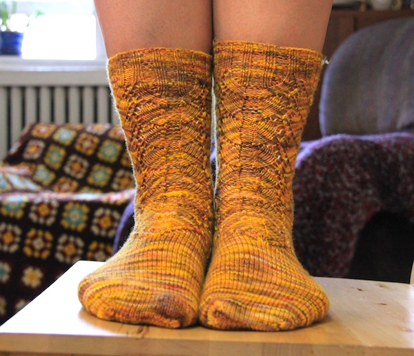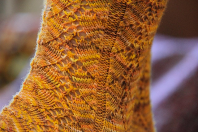 Part of me kind of wishes the charts were shifted so the lace was over the front of the foot and the purls stitches were on the sides, but I guess these are socks meant to be enjoyed in profile.