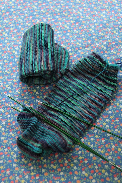 There has been a twinge of fall in the air here this week, and it has been getting decidedly cool at night, two things that should make me want to finish a big sweater, but instead drove me to knit socks. I can’t explain it.