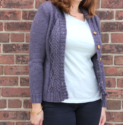 I didn’t really change much about this pattern, to be honest. It was clearly written, with lots of pictures of various parts of the sweater that reassured me I was on the right track, and aside from the mis-crossed cable incident, and the ripping out and re-doing of the cast off, this was a knit without major incident. And I got to learn how to seam and set-in sleeves and do a shawl collar, and I love learning new things, so that is a major bonus to an already excellent experience.