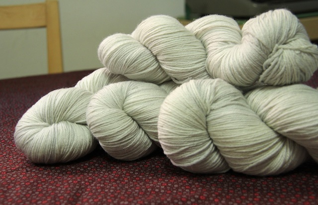 First, I got home last night to find this gorgeous, gorgeous yarn waiting for me. It’s Falkland (80% British Falkland merino, 20% bamboo) from Kettle Yarn Co. in Dusty Miller (do you read Linda’s blog? It’s great.) I requested a custom order, since she didn’t have enough of what I wanted available in her shop, and she didn’t even blink!