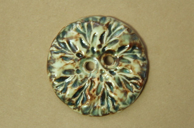 Another button, this one from my parents and made by a local (to them) potter. It is so, so lovely, and would be perfect for a shawl or a cowl. It's 1.75-inches wide.