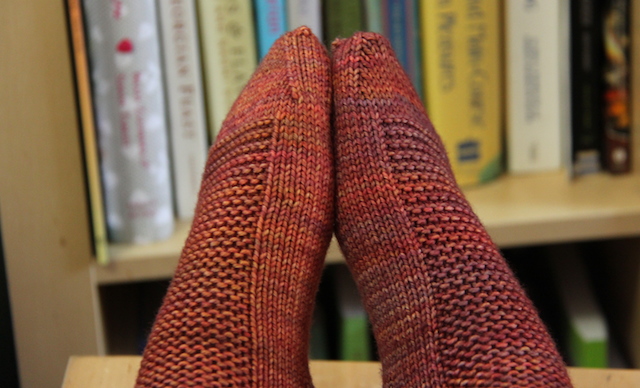 I may not be totally over the thrill of how quickly worsted-weight socks knit up. These took a week. A week in which I worked six of seven days, and worked long days for about half that stretch. These socks took a week from start to finish without even trying. I swear, if you just hunkered down, you could probably knock out a pair of these in a weekend.