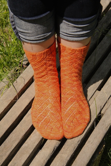 As promised: more finished socks! This pair has been sitting, half-done, in my WIP basket for nearly a year just waiting for the return of warm weather to push me into picking them back up.