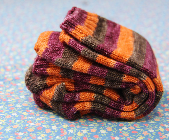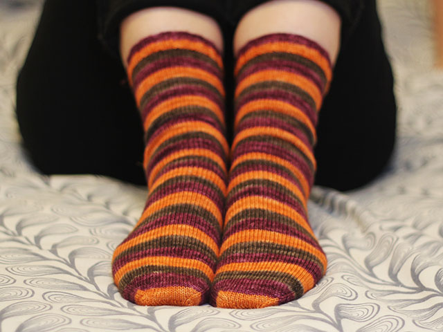 What really makes these socks worth such a (now) lengthy post, though, is the yarn, Nomadic Yarns Twisty Sock. These stripes are so evenly dyed, with such nice blending between the colours, that with not a lot of effort on my part I ended up with a perfectly matched pair. I have another decidedly Christmasy skein of this yarn in my stash, but now that these are off the needles and seem to be wearing well, I think ordering a few more is a good investment. Goodness knows that, with winters like this starting to feel like the norm, more socks won’t go to waste.