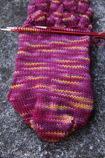 Well. I read the pattern (a point in my favour, I think) and then decided that a 4mm needle for fingering weight yarn seemed awfully big. I like a tight gauge, so I thought I’d knit this on a 3mm needle instead. So, I cast on, using a cable cast on. As soon as I saw it, though, I thought that’s too tight and pulled it off and re-cast on with a long-tail cast on. Nice and stretchy. Well, yes, but then you have to M1L and M1R in the first row, and that’s super awkward with a long-tail cast on, so I ripped it off again and then tried to cast on more loosely using my preferred cable method. Well, tiny needles and tiny wool and tiny stitches does not make picking up stitches very easy and somehow in the process of picking up the second one, I managed to drop all of them. That’s quite a talent, right?