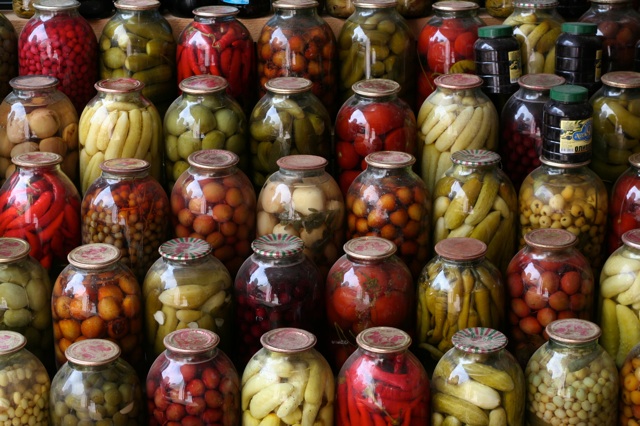 Jars and jars and jars of preserves. These are much, much larger than the jars of homemade jam I bought.