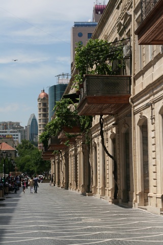 The other restored area we wandered through in Baku’s downtown was the vast network of pedestrian shopping streets. Really, Baku feels strangely Parisian (although much cleaner), and its old buildings have been brilliantly restored in this area. The crime rate there is almost zero (the benefit of a totalitarian government, I guess) and I think a lot of the happy and carefree attitudes exhibited in the streets is because of this. Families are out at all hours with young kids playing happily and running around, and there isn’t a threat to be seen. It’s kind of incredible.