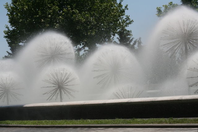 Anyway, Azerbaijan was really the only country we visited in which we didn’t leave the main city. We did spend an evening in my dad’s colleague Rafig’s dacha, on the north coast of the Apsheron Peninsula, but we were driven to and from, and although it was a wonderful evening of traditional food and traditional dancing (!), it wasn’t really sightseeing. So, Baku, then. What an incredibly beautiful city. It is right on the edge of the Caspian Sea and has been laid out to take advantage of its seaside local. There is a gorgeous wide pedestrian boulevard along the water that runs for kilometres uninterrupted and is always full of families, young couples, and school kids strolling around, eating in the many cafés or simply enjoying the view from one of the many benches. It’s all landscaped and filled with beautiful gardens and fountains and really, you could believe yourself on the Riviera.