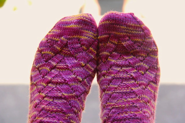 I picked up some Tosh Sock at Gaspereau Valley Fibres when I was at home over the holidays (I did a bit of yarn shopping, actually, but we can talk about that later) and after I finished my Cranberry Biscotti Socks, I cast on for new ones. I hemmed and hawed about the pattern, but after casting on for three different ones, I settled on Hermione’s Everyday Socks since they were simple and pretty. I like them a lot.