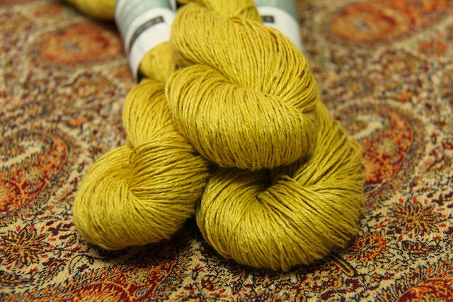 On Saturday, I thought I’d cave a little and wind the yarn (Louet Euroflax in Goldenrod) so I could swatch. L and I are going away for a few days next weekend, so my grand plan is to bring Kit as my travel knitting (we’re taking the train, which is a great place to knit) and concentrate on Grace until then. So, I wound one skein.
